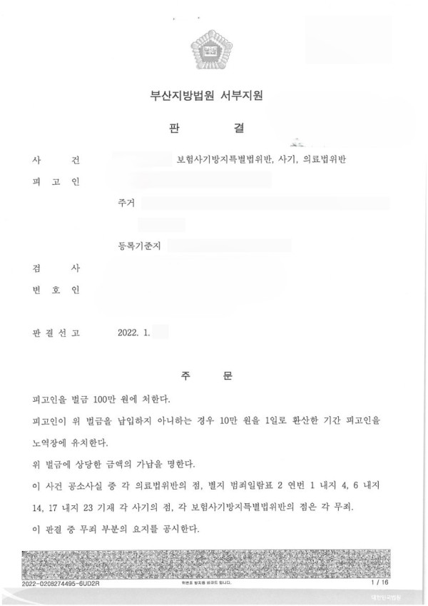 의뢰인은 치과에서 보험청구 업무를 담당하였으며, 보험회사로부터 보험금을 받기로 공모하며 일부 손님들의 실제 수술 횟수를 조작하였기에 보험사기방지특별법위반, 사기, 의료법위반으로 처벌을 앞둔 상태였습니다.