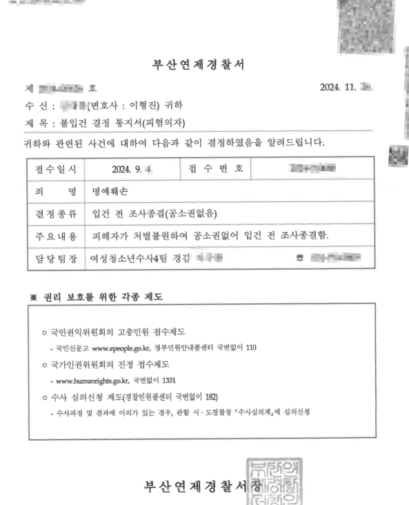 - 결과 불입건결정