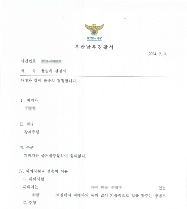 - 결과 혐의없음(불송치)