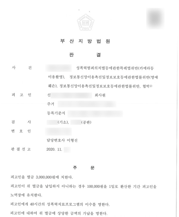 성폭력범죄의처벌등에관한특례법위반 (카메라등이용촬영), 정보통신망이용촉진및정보보호등에관한법률위반 (명예훼손), 정보통신망이용촉진및정보보호등에관한법률위반, 협박
