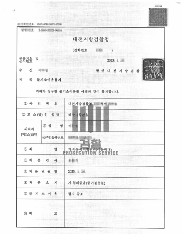 의뢰인은 해당 사건으로 본인의 자녀와 떨어져 지내야 했고, 집행유예 3년, 징역 1년 6개월을 선고 받았지만, 법무법인 파트원의 조력을 받아 불기소처분으로 사건을 마무리할 수 있었습니다.