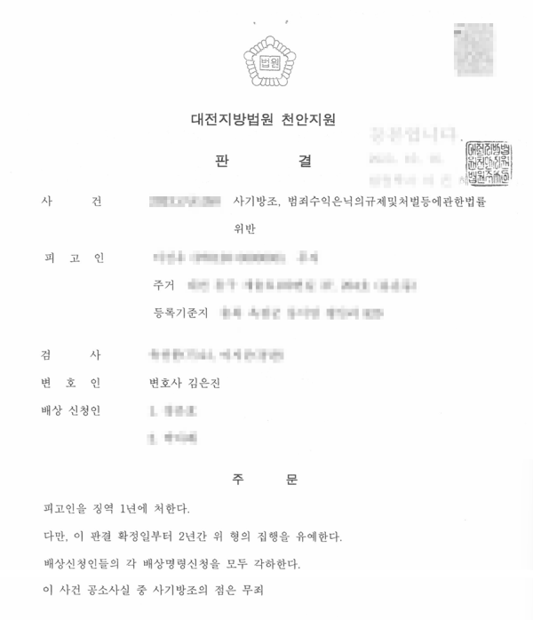 의뢰인은 A씨로부터 물품사기 범행 조직원들이 편취한 피해금원 등을 코인화한 다음 이를 다시 현금화하여 의뢰인의 계좌로 송금받을 것을 수락하여 사기방조 사건에 연루되었습니다.