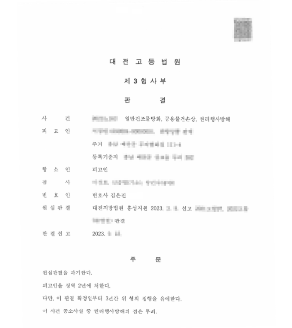 - 결과 일부무죄, 집행유예