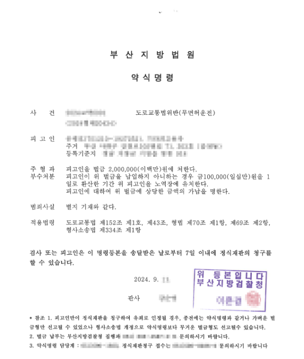 약식명령 벌금 200만 원
